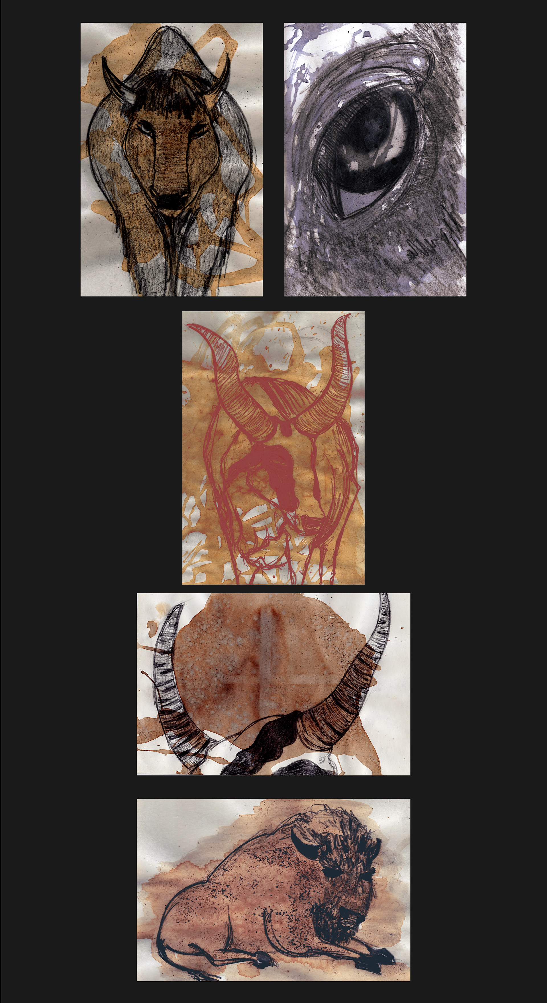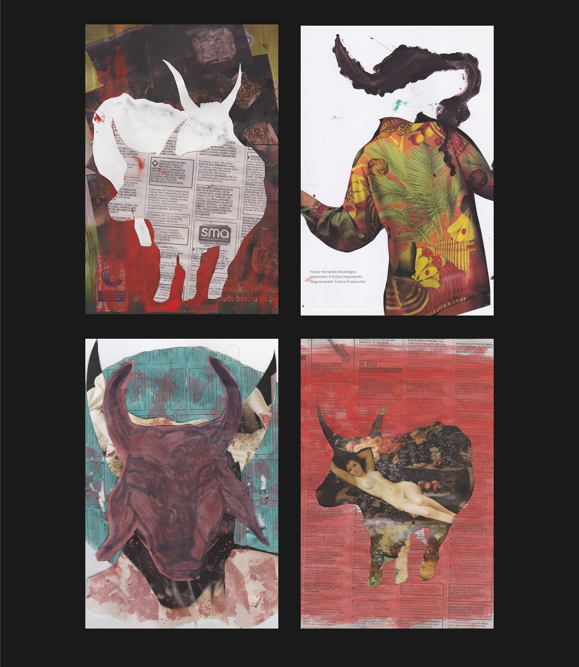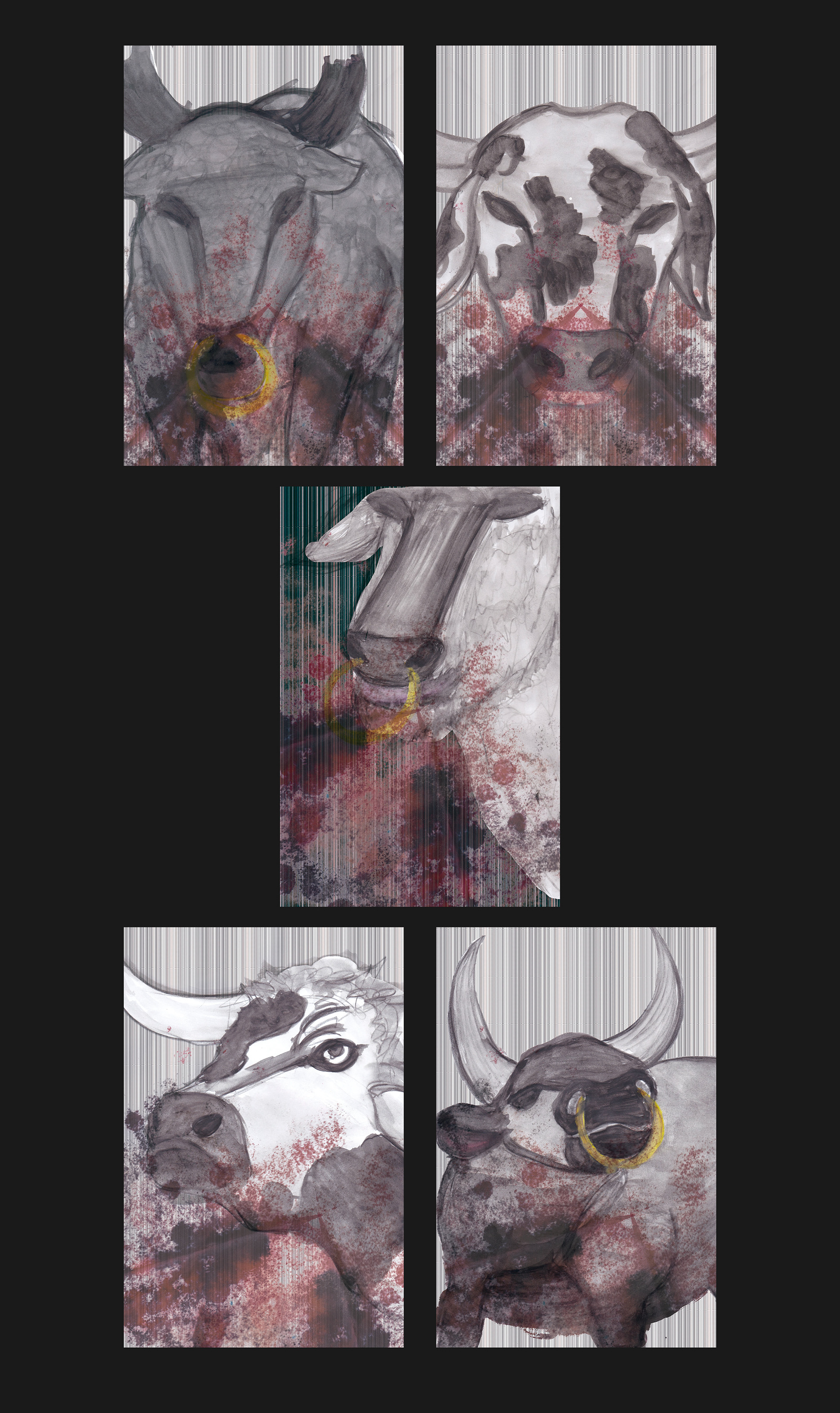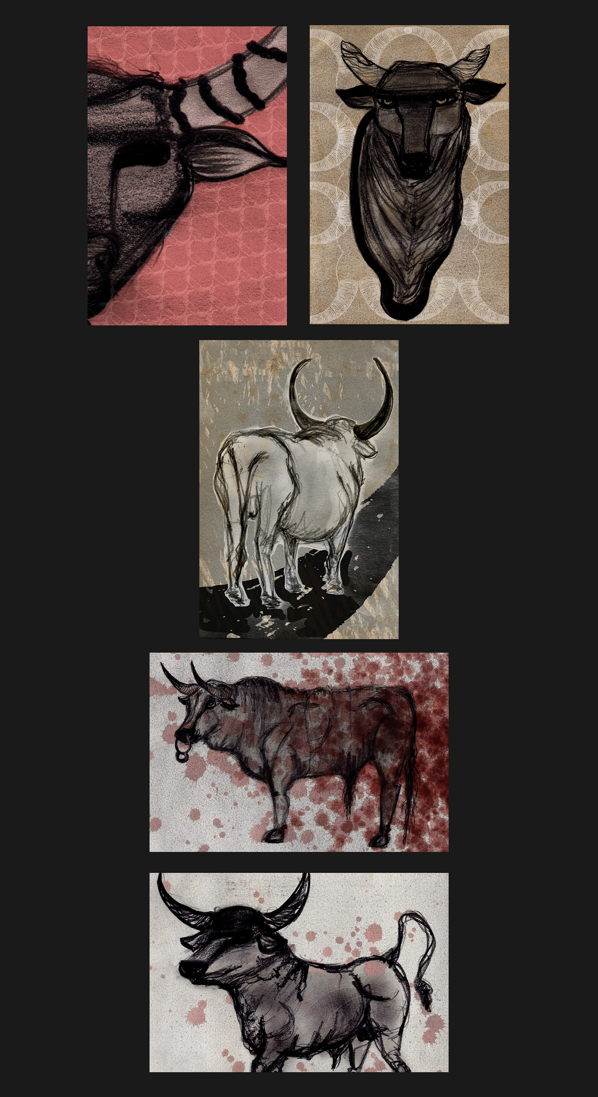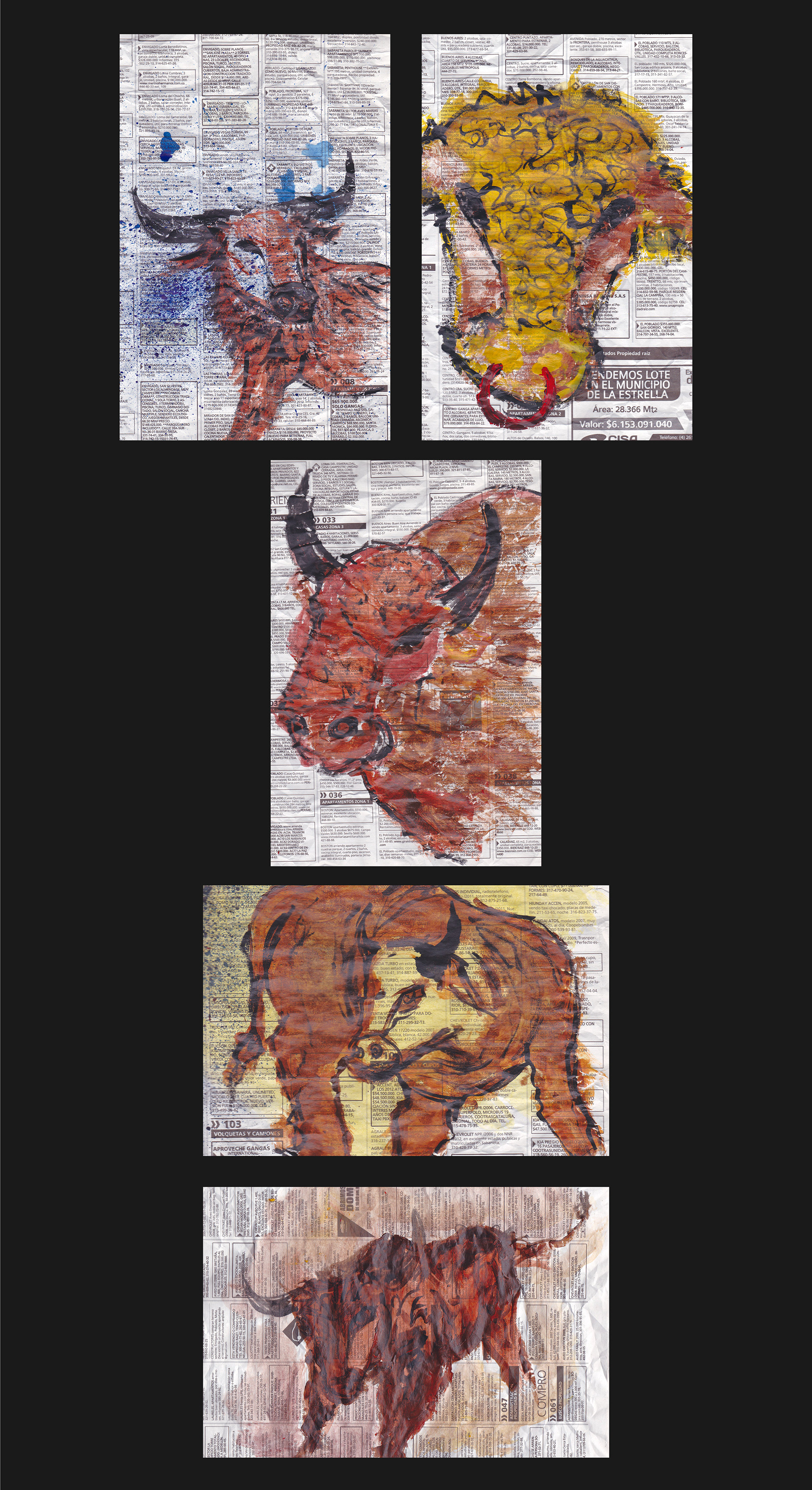 Dioniso es el nombre de esta serie de postales ilustradas basadas en los toros, El trabajo consistía en realizar una ilustración diaria con diversas técnicas como tinta, acrílicos, acuarelas, lápiz, collage y mezclado con lo digital. Dioniso the name of this series of illustrated postcards based on the bulls, the job was to make a daily illustration with various techniques such as ink, acrylics, watercolors, pencil, collage and mixed with digital.